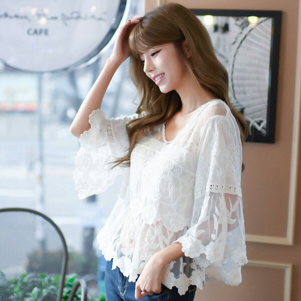 None, 刺繡鏤空v領蕾絲上衣短版上衣 韓版 預購【79-12-86852】ibella 艾貝拉。在樂天市場的ibella有最棒的商品,是您省錢的最佳選擇。