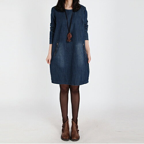 None, 中長款長袖磨白牛仔連身裙 (圖片色,M~3XL) - ORead 自由風格。在樂天市場的OREAD-自由風格有最棒的商品,是您省錢的最佳選擇。
